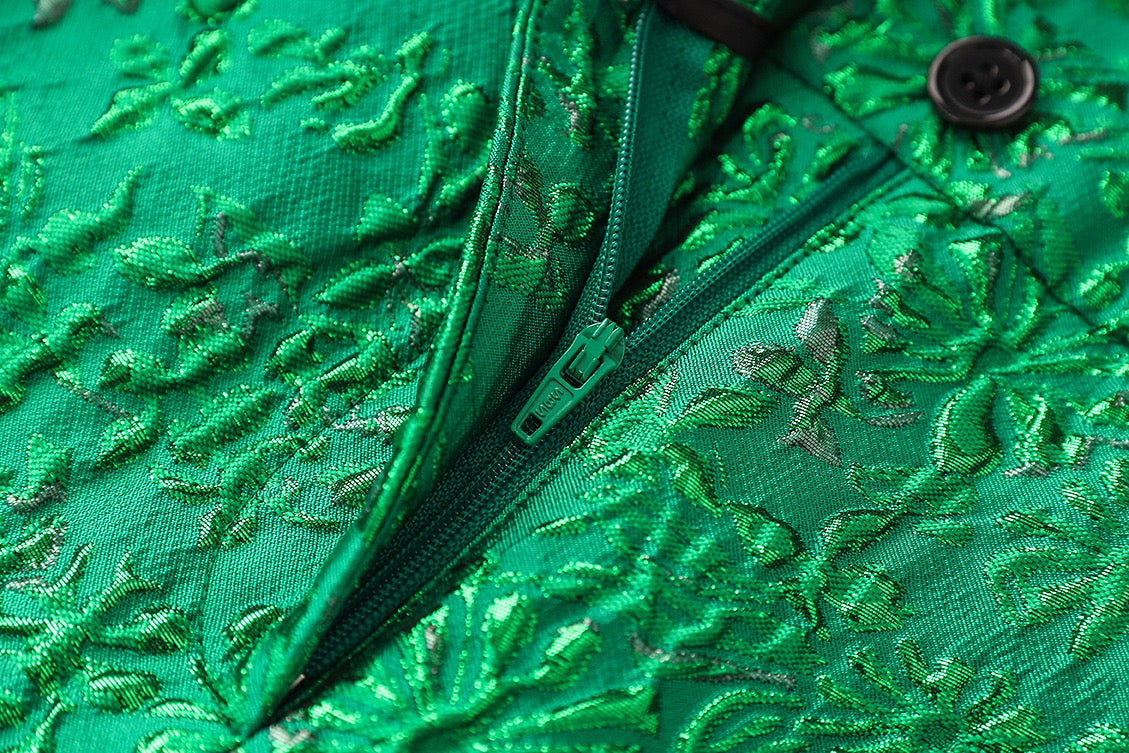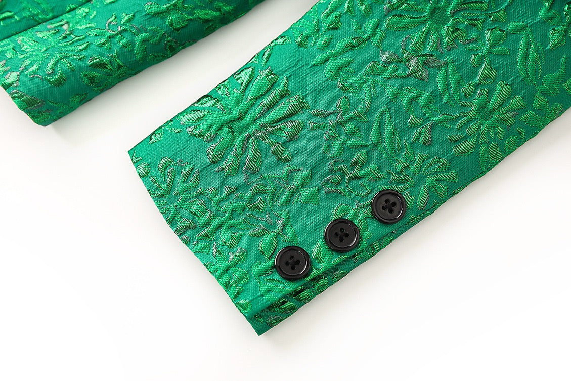 Elegant Green Jacquard Pantsuit