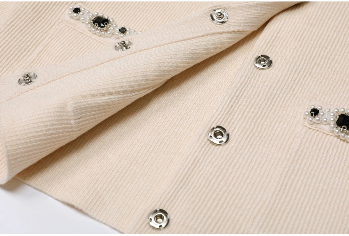 Beaded Knit Cardigan and Skirt Set (2 Colors)