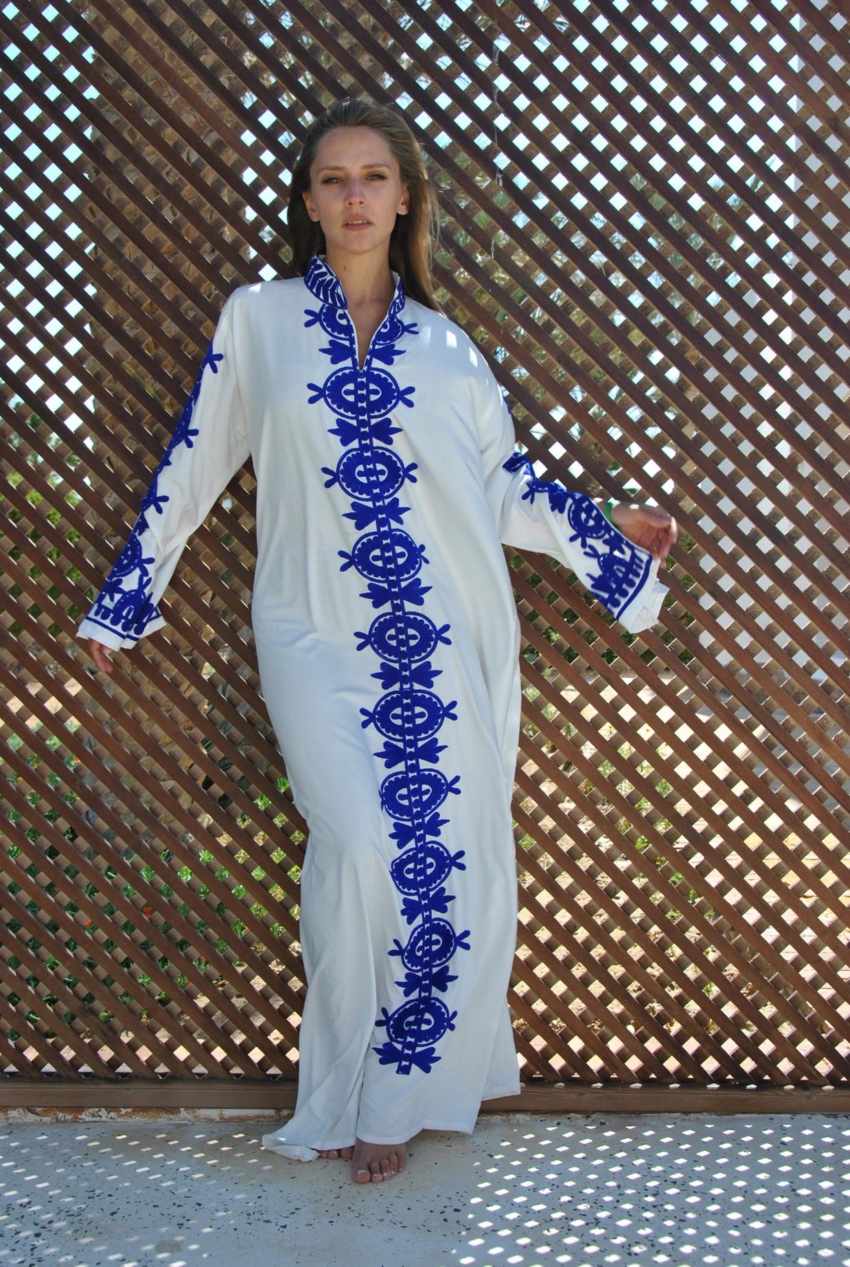 A stunning Kaftan dress that is simple, elegant, and classy! Feel like a Mediterranean queen with the flowing vibrant monotone embroidery that strikes memories of your favorite getaway. The dress is made of Egyptian cotton that has a soft feel to it so you will surely feel comfortable and royal in it. You can wear this Kaftan practically anywhere and for any occasion. You can dress it up with a pair of heels and strut like an Egyptian queen in any gathering, resort, or party. Or you can dress it down with a pair of sneakers/slippers and walk around your home feeling extremely free and comfortable while looking effortlessly stunning in your house dress. Fabric : 70% Egyptian Cotton; 30% Polyester.