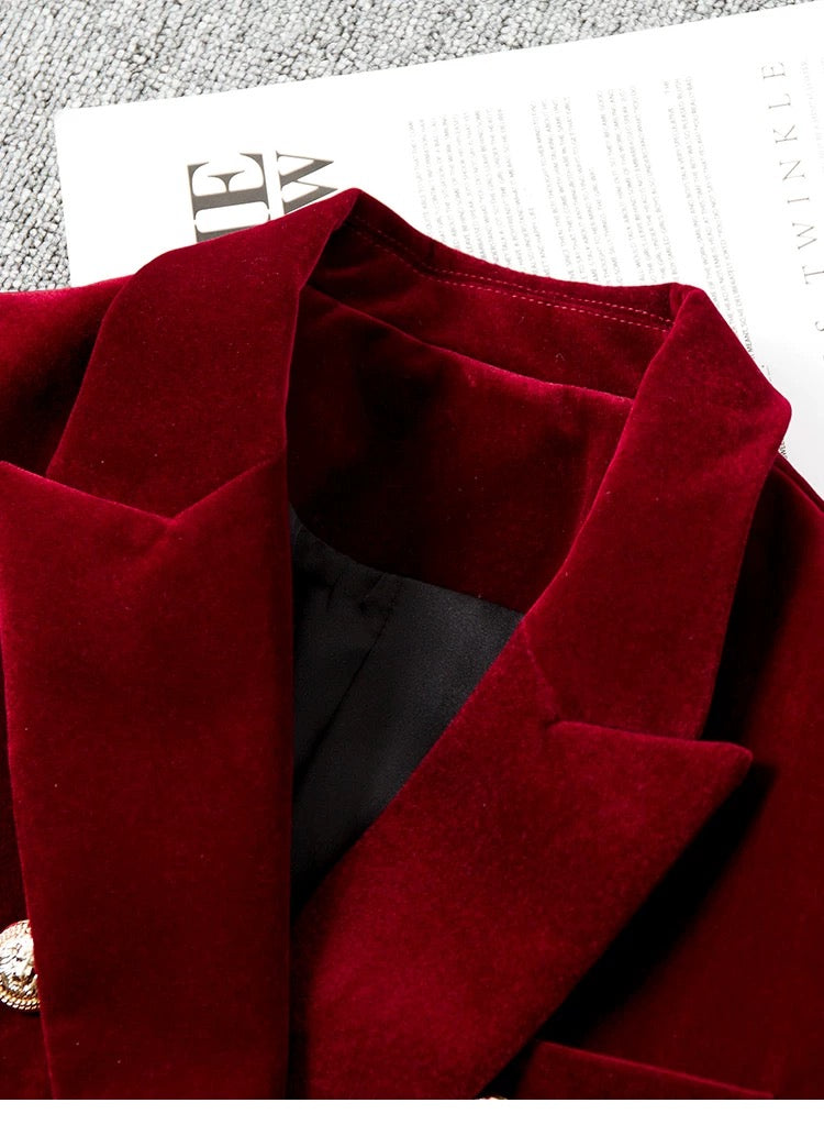 This elegant autumn-winter women’s blazer is made from soft, shimmering velvet corduroy, offering a luxurious texture and refined look. The double-breasted design, combined with structured shoulder pads, creates a sleek and tailored silhouette that enhances your figure while adding a touch of sophistication. With its long sleeves and slim fit, it’s perfect for cooler seasons, providing both warmth and style. Ideal for office wear, dinner events, or special gatherings, this blazer brings timeless elegance and confidence to any outfit, blending comfort with modern femininity.