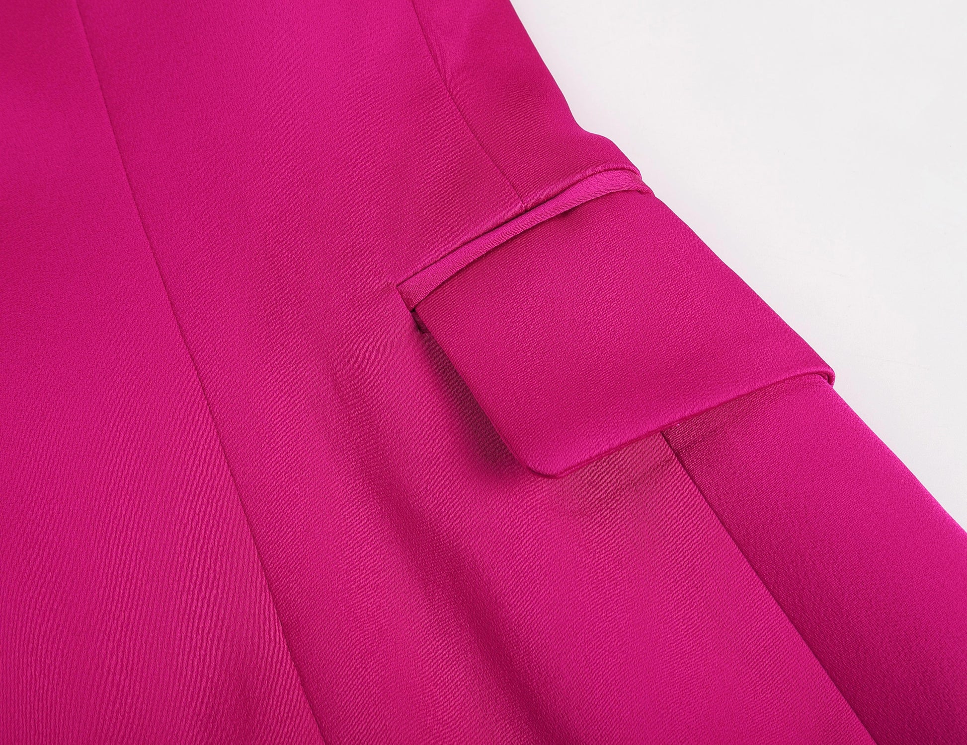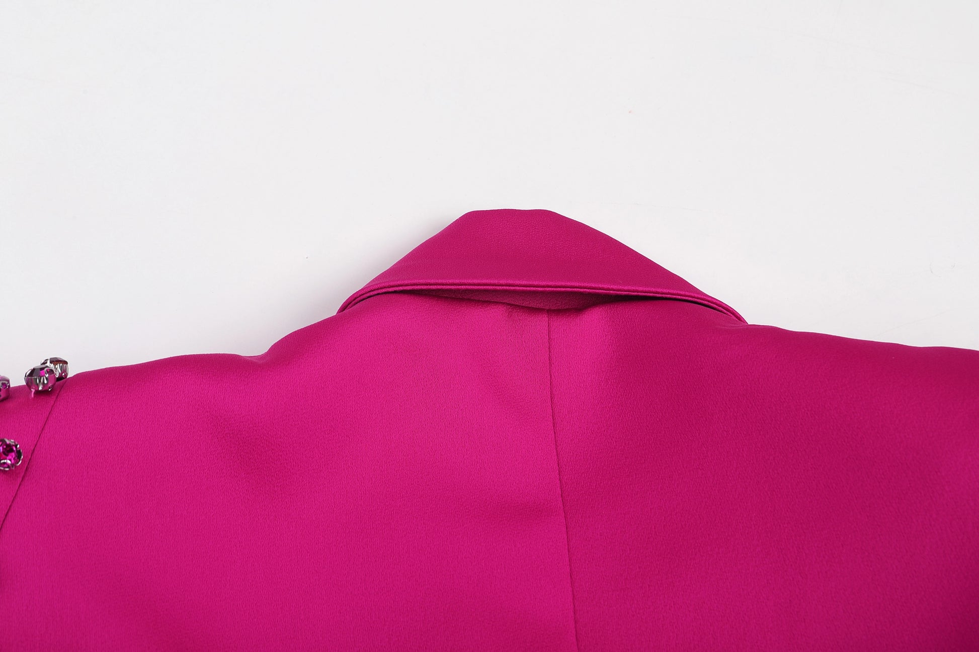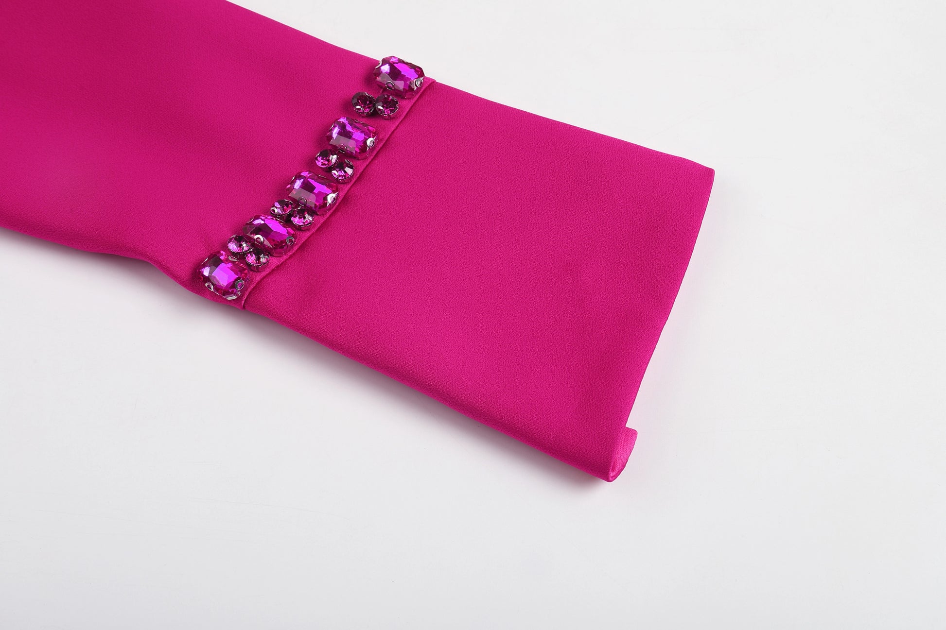 Elevate your wardrobe with this exquisite suit dress, showcasing meticulous craftsmanship with hand-sewn diamond embellishments on the lapels, shoulders, and cuffs. Tailored to perfection, the suit features a chic belt that accentuates the waist, enhancing a flattering silhouette. This dress exudes confidence and modern elegance, making this piece ideal for formal gatherings, evening events, or occasions where sophistication is key. This dress seamlessly combines classic tailoring with a contemporary sparkle, ensuring all eyes are on you.