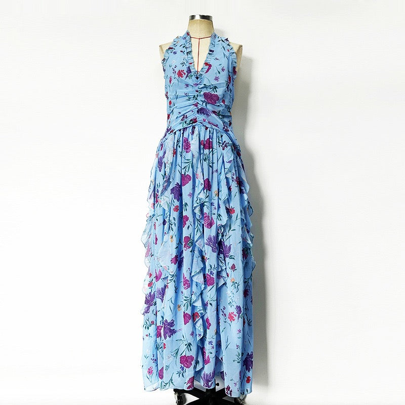 Floral Ruffle Dress (Blue)