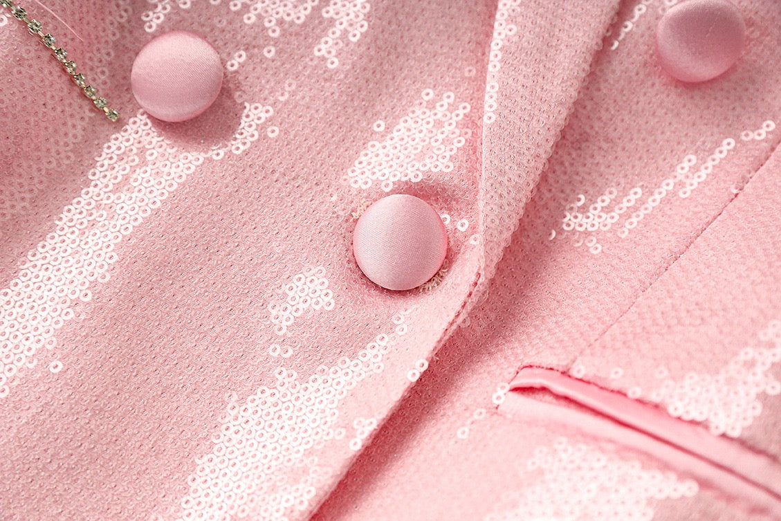 Dive into the world of luxury and elegance with our Women’s Pink Sequin Feather Blazer. Every detail, from the shimmering sequins to the delicate feathers, is meticulously crafted to ensure you’re the center of attention at every event. The blazer boasts a radiant pink hue, illuminating your presence with grace and sophistication. Double-breasted buttons add a touch of classic style, while the modern cut ensures a flattering fit for all figures. Ideal for evening events, parties, and ceremonies where making an unforgettable impression is paramount.