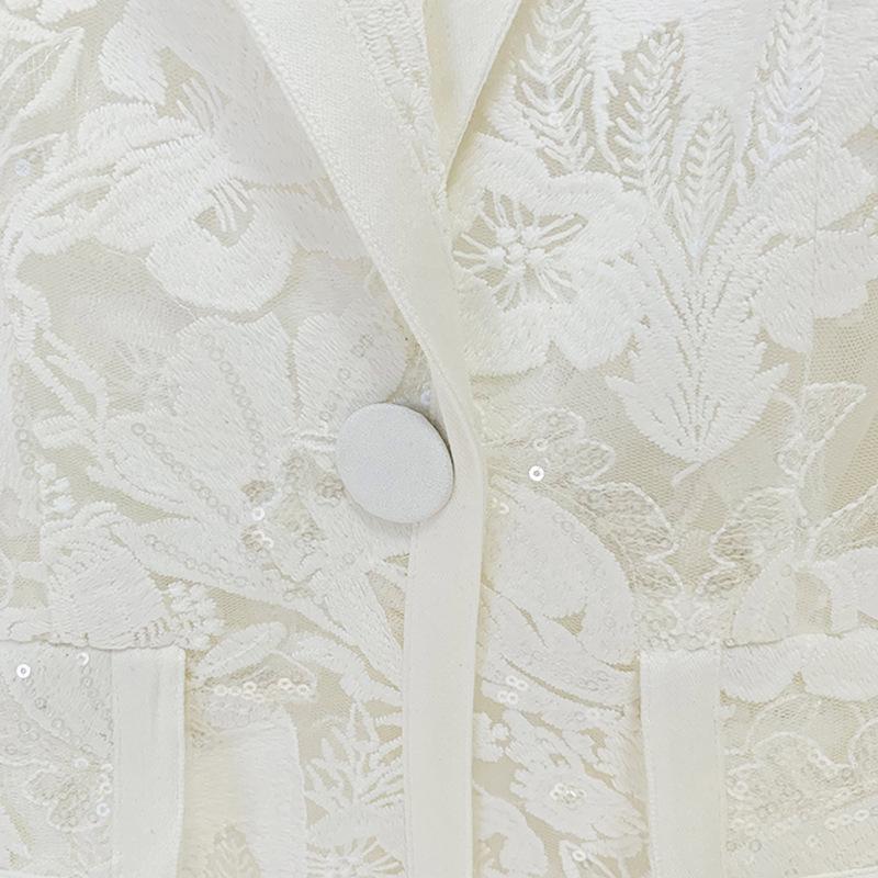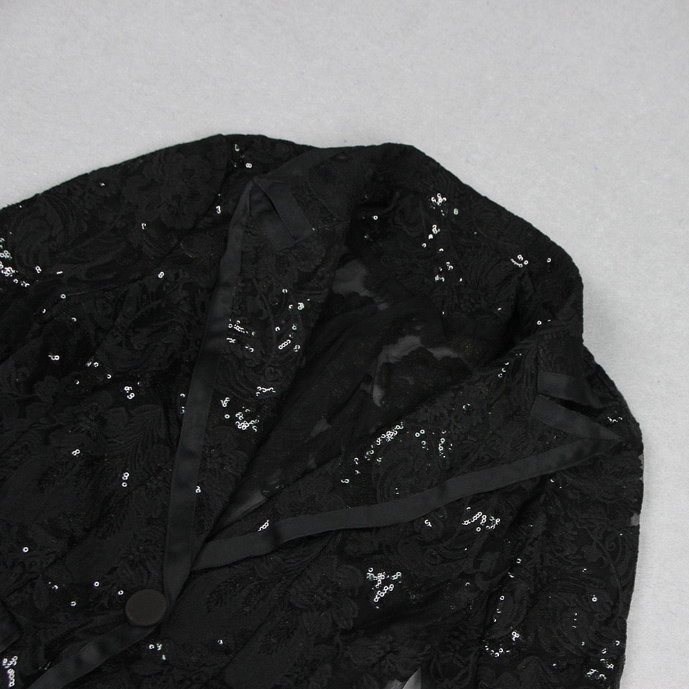 Discover the epitome of chic with our "Glam Sequin Lace Suit: Business Meets Style," a stunning ensemble that seamlessly blends the corporate world with the runway. This suit is a celebration of intricate design, featuring a dazzling array of sequins that catch the light and command attention. The delicate lace detailing adds a layer of sophistication, while the tailored fit ensures a silhouette that is both flattering and powerful. Ideal for the woman who leads with confidence and style.